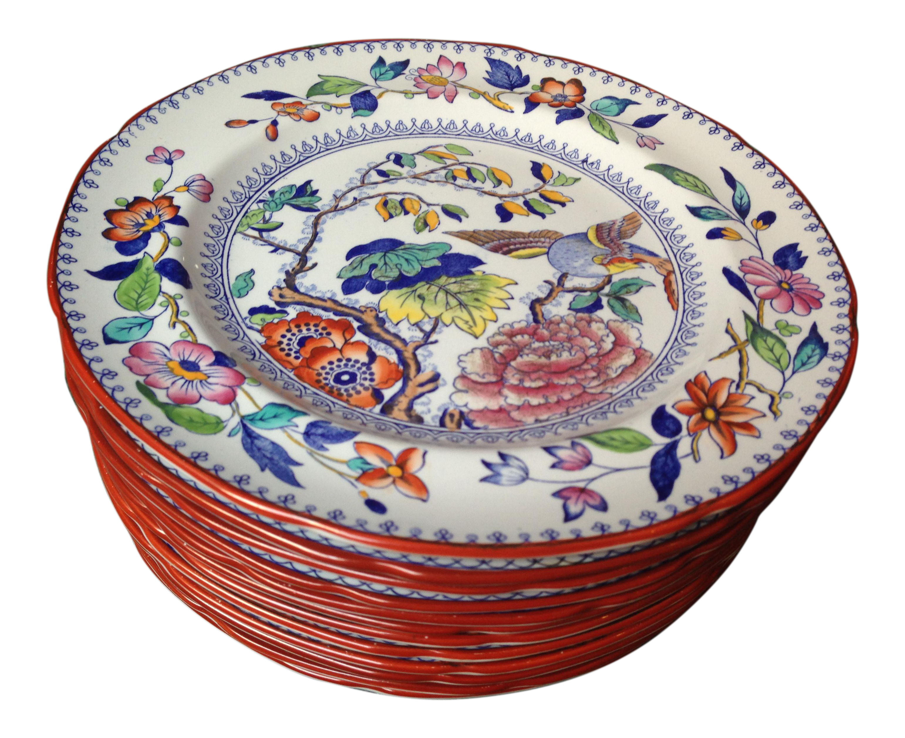 Copeland Garrett Late Spode Green Transfer Printed Set Of 12 Plates Spode Green Pottery Transferware